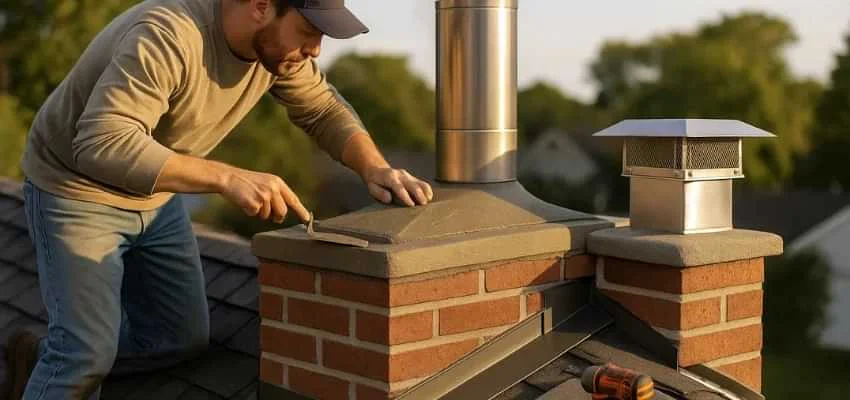 A sloped crown with a drip edge, well woven flashing, and a cap sized to the flue keep water out of attics and walls in Fort Worth. This stops recurring stains and musty odors at the hearth.